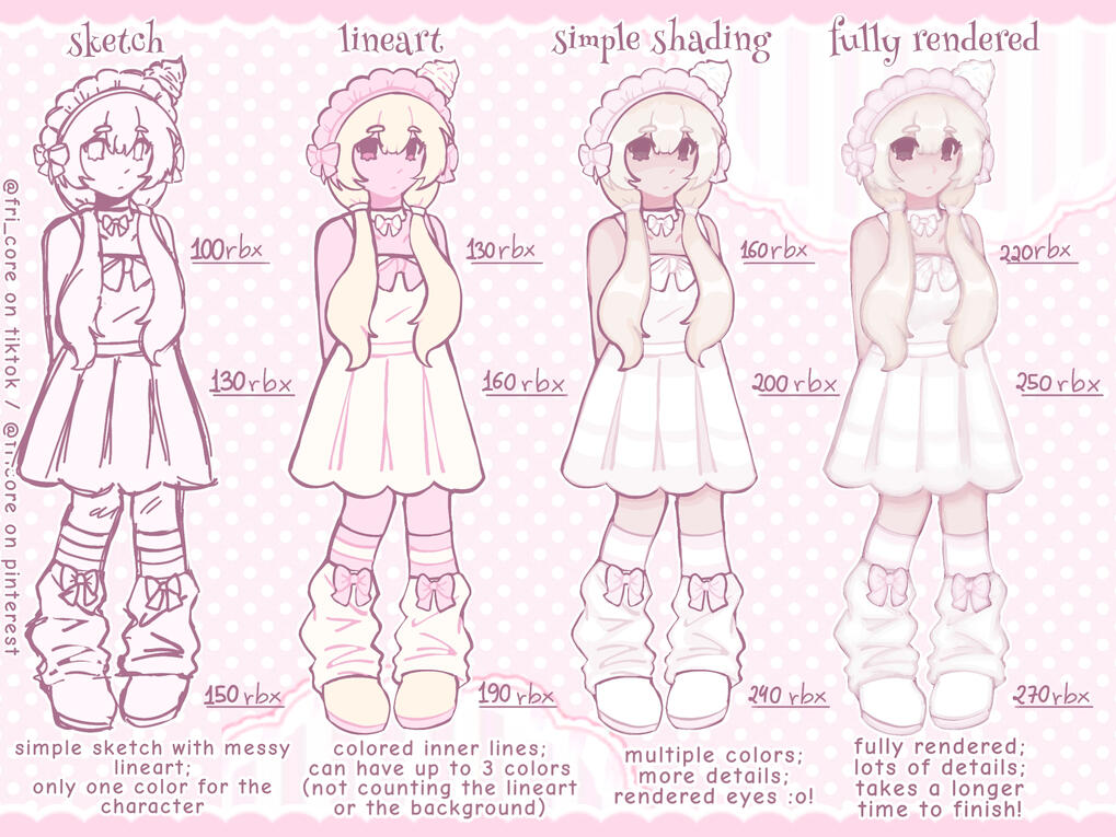 | Lineart + few colors | 180 rbx | 210 rbx | 240 rbx |